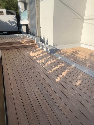 Seamless Platform Leveling: The outdoor platform was levelled to match the existing subframe, flush with the door sill for a smooth transition using Modelo Deck in the Teak Colour