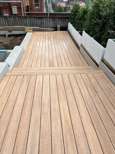 Total Decking Area: Approximately 31m² of new Modelo decking in the Blackbutt colour space, providing ample room for their outdoor activities.